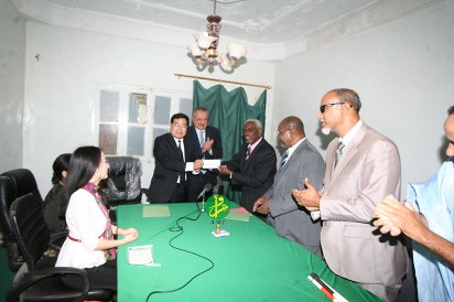 Le président de la fédération mauritanienne des associations nationales des personnes handicapées (FMANPH) a réceptionné mercredi matin au siège de sa fédération à Nouakchott Un don de l’ambassade de Chine dans notre pays comportant 300 chemises portant le slogan du 50ème anniversaire des Relations mauritano-chinoises et un chèque de 3 million d’UM.