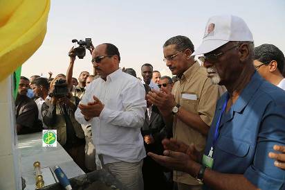 Le Président de la République Monsieur Mohamed Ould Abdel Aziz a donné dimanche le coup d’envoi pour le démarrage de la station de traitement de l’eau de Foum Gleita pour l’approvisionnement en eau potable des populations du triangle de l’espoir (Aftout Chergui).
