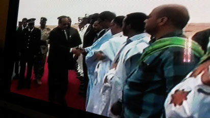 Une première version des images de l’accueil du président de la République à Zouerate diffusées en milieu de journée du 13 avril sur "El MouritaniyaTV" avec des «Aziz zéro!» a été travaillée en rediffusion entre 12h et 13h pour faire disparaître du son...